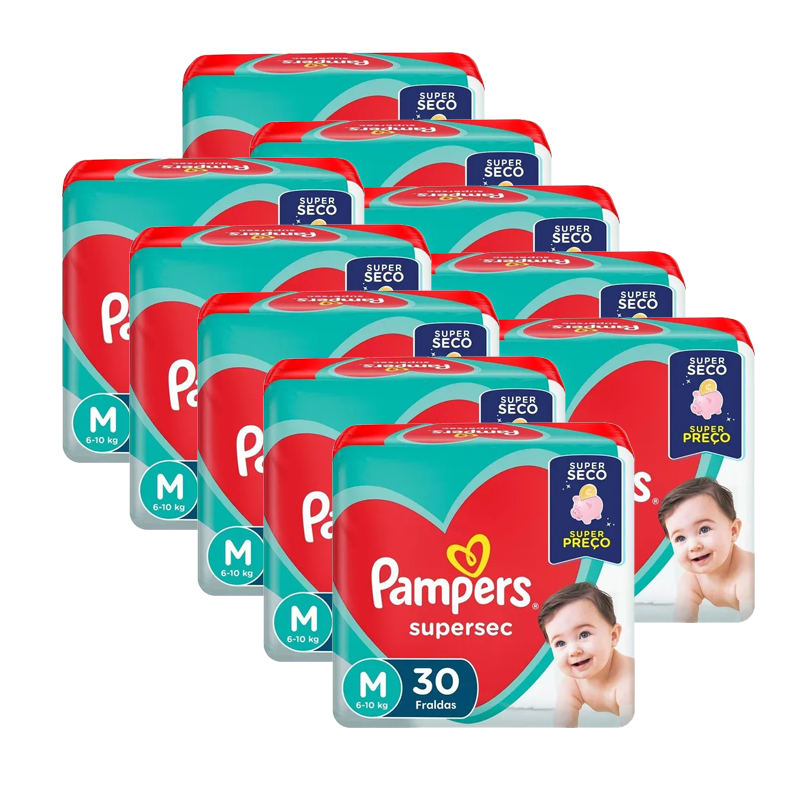 Kit 10 Fraldas Pampers Supersec Tamanho M - 300 Unidades
