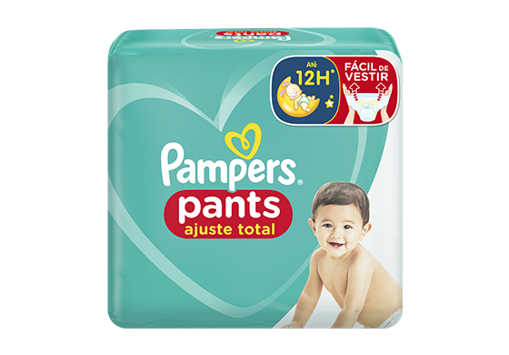 Experimente a nova Pampers Pants Ajuste Total. Com cintura elástica 360 é fácil de pôr mesmo quando eles estão em movimento, para um ajuste perfeito e até 12 horas sequinho.