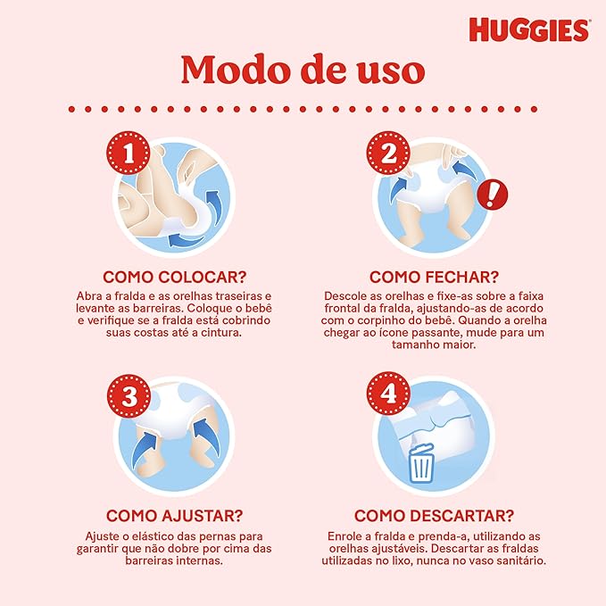 Além disso, sua cintura com indicadores alerta o momento ideal para trocar de tamanho, proporcionando tecnologia superior com mais conforto e absorção tanto durante o dia quanto à noite, em comparação com fraldas tradicionais Huggies.